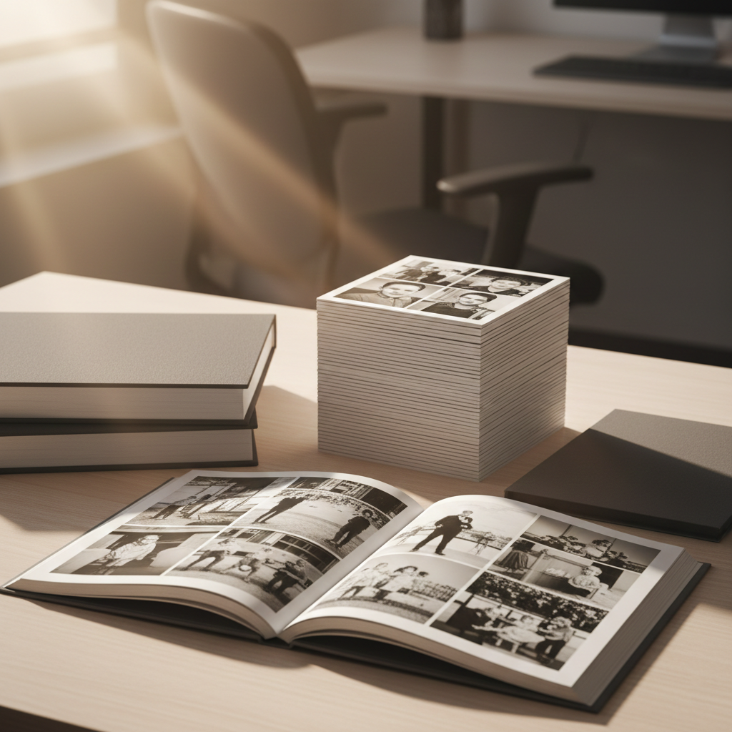 • Serviços Fotográficos: Da impressão clássica em papel fotográfico (com a elegância da borda francesa) ao moderno acabamento em PVC e a criação de Fotolivros personalizados em cores, preto e branco ou sépia.